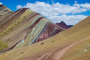 Los Montes Arco Iris del Perú, también conocidos como Vinicunca, son impresionantes y pueden ser vistos en la espectacular caminata del Ausangate. La propia montaña del Ausangate es considerada una montaña sagrada (o espíritu de la montaña) por los peruanos locales y es la deidad del Cusco. Desde la época pre-incaica la montaña ha sido un lugar de culto y ofrendas y esta tradición continúa hoy en día.